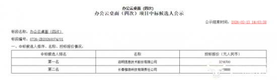 功夫不负有心人,在第四次招标中,终于出现了合格的中标候选人。公告显示,项目最终第一中标候选人是启明信息技术股份有限公司,投标报价3216700元;