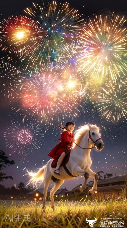 南京地铁里,小朋友盯着妈妈手机屏幕欢呼:“妈妈我在跑!”——她的照片生成了一段正骑着小马在烟花下奔跑的视频。