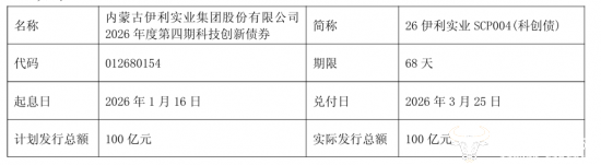 公告显示,自2026年以来,伊利股份已在十余天内密集发行了四期科技创新债券,发行额度分别为110亿元、110亿元、130亿元、100亿元,发行利率分别为1.45%、1.45%、1.45%及1.49%,而期限分别为81天、81天、79天、68天。