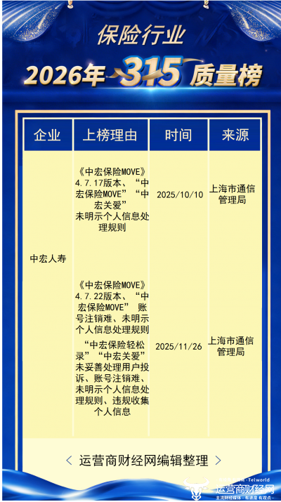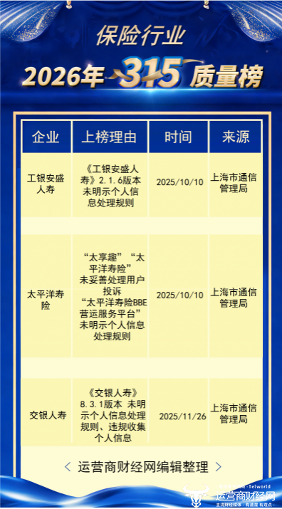 “2026年315保险平台侵犯用户隐私榜”