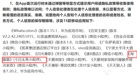 值此315消费者权益日到来之际,运营商财经网针对互联网行业多个细分领域进行梳理,盘点了过去一年知名企业存在的侵害消费者权益的典型案例,发现知名票务平台淘票票曾违法违规收集个人信息。