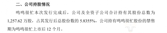 据悉,作为鸣鸣很忙的早期投资方,好想你及全资子公司在2023年向鸣鸣很忙投资7亿元,取得其6.64%的股权。而鸣鸣很忙于1月28日登陆港交所上市,发行价236.6港元/股,发行完成后,好想你合计持有其股份总数为1257.62万股。