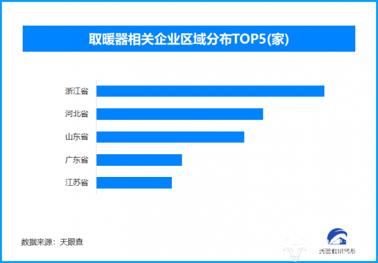 天眼查专业版数据显示,截至目前我国现存在业、存续状态的取暖器相关企业超9900家。从区域分布来看,浙江省、河北省、山东省取暖器相关企业数量位居前列,三个省市数量总和超过4200家,占企业总数的43.13%。