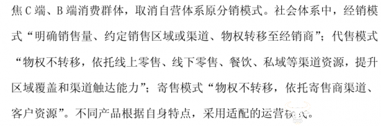 何为代售模式?在贵州茅台发布的《2026年贵州茅台酒市场化运营方案》中,曾提出将推动由“自售+经销”的传统销售模式向“自售+经销+代售+寄售”多维协同的营销体系转变,并解释到,代售模式“物权不转移,依托线上零售、线下零售、餐饮、私域等渠道资源,提升区域覆盖和渠道触达能力”。