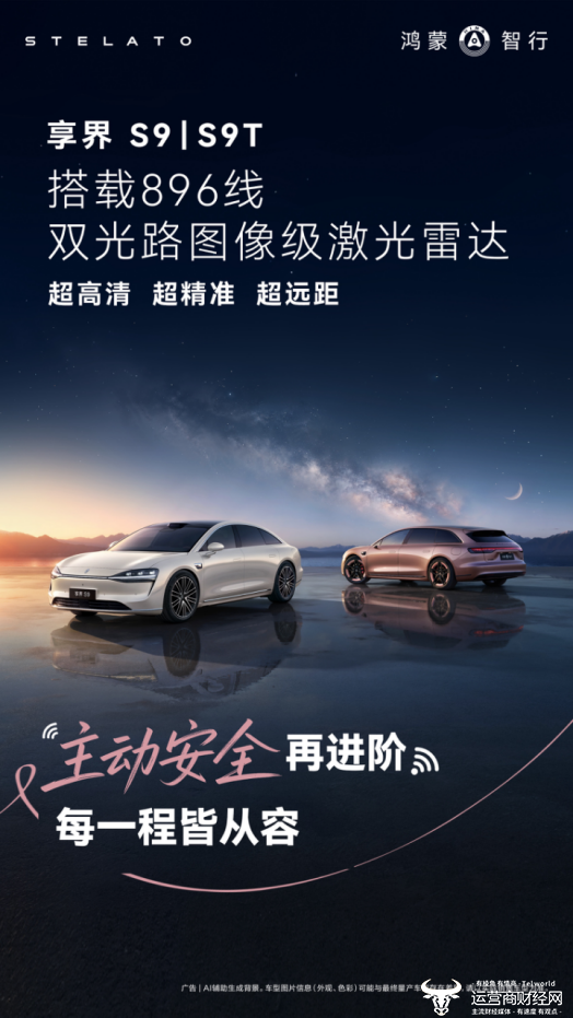 2026年3月23日,在华为春季全场景新品发布会上,享界旗舰9系轿旅双车焕新上市。享界S9T新增星玫粉车色,享界S9新增月绒白车色,可选全新星云红内饰、专属豪华轮毂,陪你自由穿行旷野、都市,赴一场浪漫的春日之约。此外,新车搭载华为乾崑智驾® ADS 4 高阶版[ 该功能仅为辅助驾驶,不能代替驾驶员操控,驾驶员需时刻保持必须的注意,并根据周边环境及时予以干预],提供全球量产最高规格896线激光雷达[ 数据统计截止至2026年3月23日]配置版本,辅助驾驶能力全面进阶,智慧出行更安全、从容、悦己。