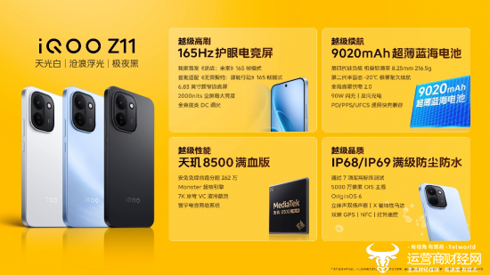 2026 年 3 月 26 日,“性能续航小超人”iQOO Z11 系列正式发布并已全渠道开售,首销补贴到手价 1499 元起,国补后到手价 1274.15 元起。iQOO Z11 越级首发 iQOO 品牌首款 165Hz 护眼电竞屏和史上最大 9020mAh 超薄蓝海电池,带来同档位越级体验。