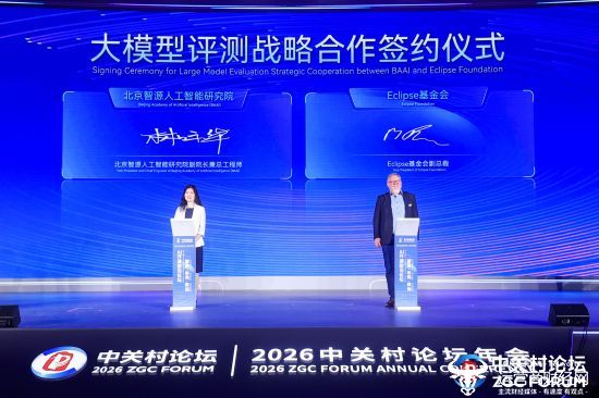 论坛同期,FlagEval与Eclipse基金会正式签约,也成为智算产业生态建设的重要举措,为众智FlagOS 2.0搭建起国际化权威评测体系,打造“评测+开源+合规”三位一体协同模式,推动中欧科技协同创新与全球智算资源深度融合。FlagEval作为国内体系完整、影响力突出的大模型评测平台,拥有海量评测资源且牵头国际标准制定;Eclipse基金会作为欧洲开源AI核心力量,在开源治理、欧盟合规等领域经验深厚。双方将联手打造适配欧洲需求的大模型评测开源项目PanEval,为众智FlagOS 2.0全技术栈提供欧盟合规的全维度评测验证,而众智FlagOS 2.0也将反向提供底层算力与技术适配支撑。此次合作填补了智算基础设施“开发-评测-国际化合规”的生态空白,标志着中国AI评测体系首次深度嵌入全球顶级开源治理生态,构建起一站式开发者服务与完整产业闭环,为中国AI产业全球化发展筑牢技术支撑。