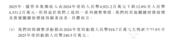 奈雪的茶披露的财报数据显示,公司2025年实现总收入43.31亿元,较2024年的49.21亿元下降12.0%,为其自2021年上市以来降幅最大的一次年度收入下滑。同时,公司2025年经调整净亏损却从9.19亿元收窄至2.41亿元,收窄幅度达73.8%,但仍为亏损状态。