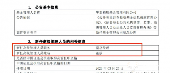 近日,华泰柏瑞基金发布公告称,公司总经理助理、投资二部总监、基金经理董辰升任公司副总经理。运营商财经网将做以下梳理。
