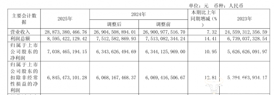 海天味业披露的财报数据显示,公司2025年营业收入为288.73亿元,同比增长7.32%,其中,调味品主营业务收入为273.99亿元,同比增长9.04%。同时,公司2025年归母净利润同比上涨10.95%至70.38亿元,营收和利润双双增长,且均达到历史最高水平。
