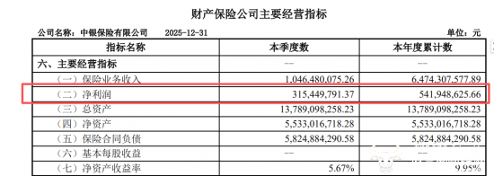 在中银保险发布的2025年第四季度偿付能力报告中,中银保险在2025年累计实现的净利润为5.42亿元。