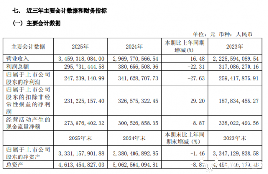 据丸美生物发布的2025年年度报告显示,全年实现营业收入34.59亿元,同比增长16.48%,收入规模刷新历史纪录。但同期归母净利润2.47亿元,同比大幅下滑27.63%,但净利润的金额也很可观。
