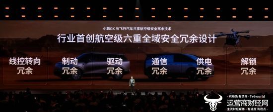 小鹏GX搭载了行业首创航空级六重全域安全冗余系统,全面覆盖线控转向、制动、驱动、通信、供电、解锁六大核心维度,与飞行汽车共享航空级安全冗余技术。