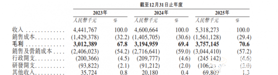 这或与公司居高不下的营销开支有关。2023年至2025年,公司销售及营销成本分别为24.06亿元、27.17亿元、30.44亿元,营收占比维持在54%至59%的高位,其中,营销及推广开支从2023年的17.20亿元激增至2025年的23.81亿元,两年增长38.4%,侵蚀了利润空间。
