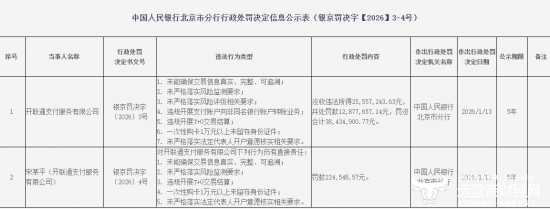 2026年开年以来,多家支付机构收到罚单,其中最引人注目的当属开联通支付。该公司一次性因七项违法违规行为被罚没超3800万元,数额不小。