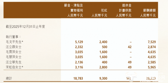 此外,截至2025年年末,宋虹佺还持有公司H股股份1071.12万股以及非上市股份1023.12万股,按公司末期股息分配预案中,每股派发人民币1.00元计算,宋虹佺还可获得分红超两千万元。这也意味着,对于宋虹佺来说,相较于薪酬,分红才是大头。