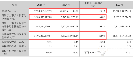 据25年年报显示,海信家电营收在其上任一年后增速放缓,全年营收879.28亿元,同比下降 5.19%;归母净利润31.87亿元,同比下降4.82%,这也是公司近年来首次出现营收下滑,经营压力不言而喻。