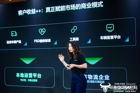 效益层面,车辆支持全天候运营,充电一小时即可“满血复活”,新车交付后最快两天即可完成部署。“同样一条线,原来需要两个司机两班倒,现在能省掉50%的人力,多跑一趟就多一份毛利。”洪小如还分享了轻舟创新的“区域级共享配送”模式:车辆产品、FSD服务、监管平台交由本地运营平台统筹,末端物流企业按单付费、按效果付费,从根本上降低了重资产压力。