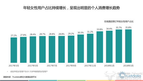 行业格局的变化来源于用户构成的持续变化和在线旅游市场的不断演进。一方面,在线酒店预订用户规模持续增长,用户年轻化特征日趋显现。