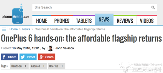 图:《PhoneArena》一加6上手——超值旗舰归来