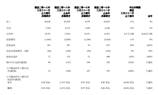 具体来看,个人电脑和智能设备业务持续保持强劲,全年收入恢复增长;季内,数据中心业务转型导致年比年收入强劲增长,连续第二个季度年比年增长和收窄本财年每季度季比季的亏损;移动业务在一些新兴市场面临挑战,但在拉丁美洲和北美洲持续表现良好;新财年会集中减少亏损。