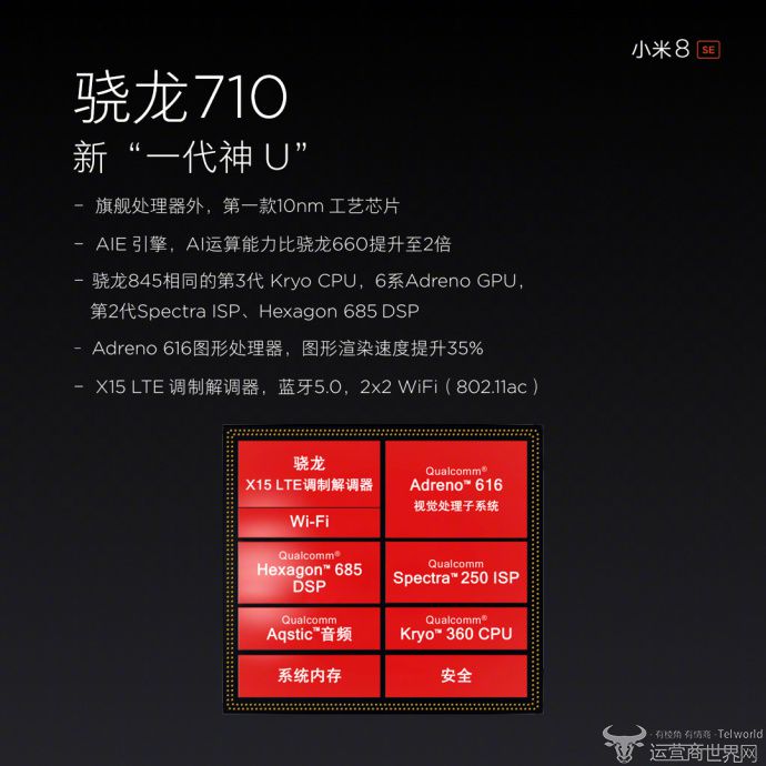 在今天的小米新品发布会上,小米正式推出了年度旗舰级手机小米8,不过出乎意料的是,小米同时发布了一款面向中端市场的手机小米8 SE,这款手机搭载了刚刚在国内发布的骁龙710芯片,小米8 SE也成为骁龙710芯片的首发机型。