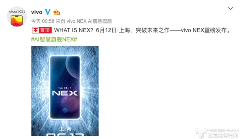 作为vivo全面突破探索未来的全新旗舰,vivo NEX是vivo极致精神的一个缩影,这势必将会引领智能手机的全面进化。关于这款手机的信息仍旧云里雾里,更多的精彩不妨持续锁定vivo官微,一同漫步在一场超越想象的探索之旅中。敬请期待6月12日的上海,见证vivo NEX震撼发布。