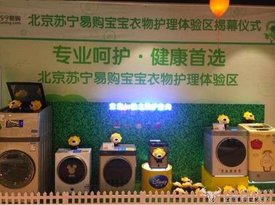 6月1日,在北京红孩子朝阳路店,北京苏宁易购联合美的、小天鹅等洗衣机品牌共同举办宝宝衣物洗护体验区揭幕仪式。