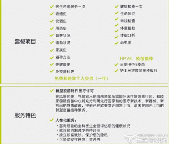 从预售页面来看,和睦家九价宫颈癌疫苗套餐除了三剂九价宫颈癌疫苗外,还包含多项内容,如医生咨询服务一次、健康检查一次、护士三次疫苗接种服务以及一年免费和睦家个人会员等。产品页面相关公告还显示,九价宫颈癌疫苗的使用人群为16—26岁的女性,和睦家销售的该套餐有效期限为一年。