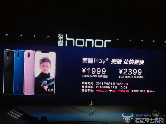 荣耀Play拥有4GB+64GB全网通版,6GB+64GB全网通版两款,两版本售价分别为1999元、2399元。即日起接受预约,6月11日首发,而酷玩版则在7月份限量发售。
