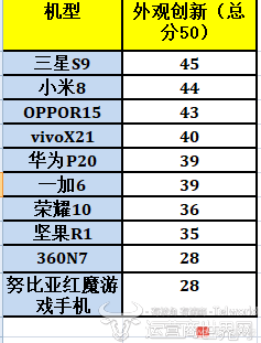 综合评估来看,在满分为150分的综合创新指数中,三星S9/S9+以139分夺得第一名,但价格上也最高,S9和S9+分别为5799元和6699元起步;排名第二的是小米8,分数为134分,售价2699元起,紧接着华为P20和P20Pro以128分排名第三,手机分别为3799和4988元起。