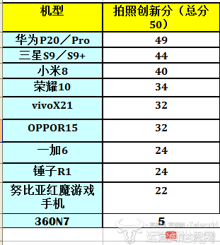 评估这个领域,华为P20 Pro以后置4000万像素(彩色镜头)+2000像素(黑白镜头)+800万像素(长焦镜头)的强悍配置胜出,其前置摄像头同样达到2400万像素,此外在拍照场景上推出每秒960fps慢动作拍摄,f/1.6 大光圈强化夜间拍照以及3D人像光效优化人像拍照,因此以49分的高分排名第一。