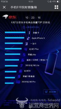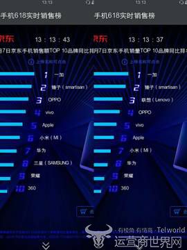 截止6月7日13时13分,一加手机稳定占据京东手机单日销量及销售额同比排名第一名,销售额是去年同期的32倍,成为京东手机最大的黑马。