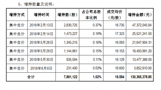 值得注意的是,本次增持前上海力鸿持股370046180股,持股比例为48.21%;本次增持后,上海力鸿持股数量为377970302股,持股比例达到49.24%。