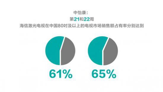 此外,中怡康数据显示,这款80吋4K激光电视发布后的第21和22周,海信激光电视在中国80吋及以上的电视市场销售额占有率分别达到61%和65%,有效地抢占了75吋液晶电视的市场份额。