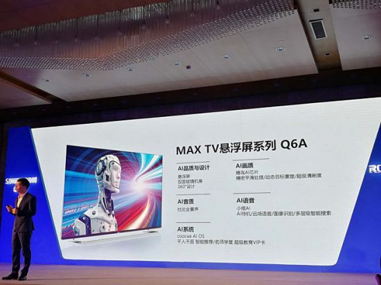 创维带来的是AI智能电视Q6A。据了解,Q6A创维AI电视MAX TV系列之一,采用悬浮屏和双面玻璃设计,搭载创维自主研发的“蜂鸟AI芯片”,能够在提升图像画质的同时,还原临场感的画面;同时,Q6A还搭载由创维和百度联合打造的全新对话式人工智能语音系统,通过语音操控能够释放消费者的双手;此外,Q6A采用的酷开AI系统具备人脸识别功能,能通过辨别消费者的喜好,为其推荐不同内容。