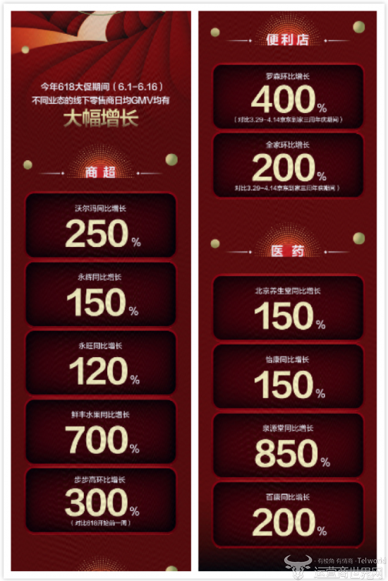 作为国内销售规模最大的线上零售商,京东在今年的年中购物节当中不但继续推出“超级会员日”、“超级秒杀日”和“超级粉丝日”,而且还充分发挥线下赋能的技术优势,携手超过50万家线下门店开启“无界狂欢”,包括沃尔玛、永辉、步步高等商超;奥康、鸿星尔克、良品铺子等品牌遍布全国的门店;京东之家、京东便利店、京东母婴体验店等京东自创的零售创新业态。