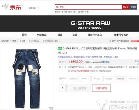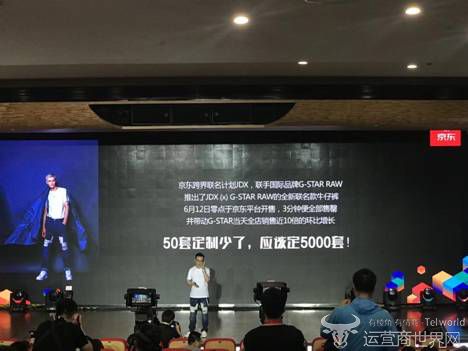 在胡胜利的讲话中,特意提到了一个关键的信息“JDX (x) G-STAR RAW京东跨界联名环保牛仔裤及联名T恤”,为何这样的一款牛仔裤三分钟就能全部售罄呢?这就不得不提的是京东在时尚行业的创新——2017年年初上线的JDX京东跨界联名项目,致力于京东持续与一系列国际知名时尚品牌及设计师合作推出跨界合作联名款。