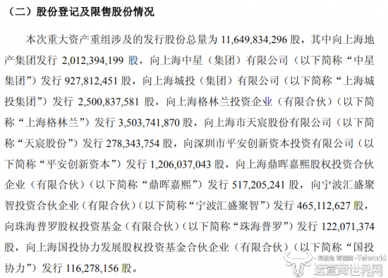 本次,重大资产重组涉及的发行股份总量为11,649,834,296股,涉及10家企业。