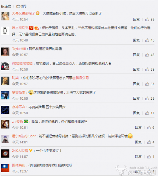 腾讯此公告一发,引来一片哗然,然而没想到的是,广泛的讨论中竟出现了一边倒的反嘲,网友纷纷表示“贼喊捉贼”、“乌鸦笑猪黑”。当然对于头条方面同样“黑公关”口径的对骂,网友也没有“嘴软”——“自己心里没点数吗?”“你们继续狗咬狗,我们继续吃瓜”等评论也是呈集中态势。
