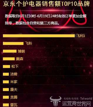 这次在京东618个护电器销售额品牌排行榜上,奔腾也并没有获得很好的成绩,仅仅排在第九名,跟第一名的飞利浦销售额之比相差非常大。可以说,此次榜上的成绩以及这明显的差距简直令人难以置信。