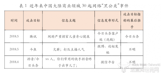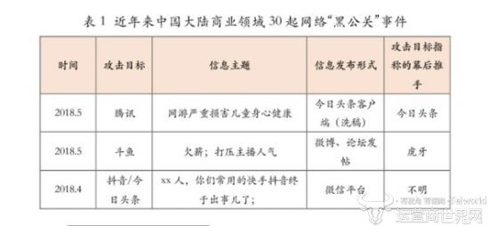 近日,今日头条与腾讯的升级之战引爆了一个热词——“黑公关”,一时间,关于黑公关的种种案例也再度被扒到台面上任君消遣。6月27日,广东省舆情大数据工程技术中心、广州市舆情大数据重点研究基地就联合暨南大学新闻与传播学院推出了一份《网络“黑公关”研究报告》。