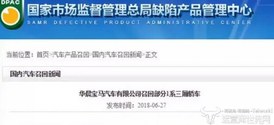 公告显示,华晨宝马汽车有限公司根据《缺陷汽车产品召回管理条例》和《缺陷汽车产品召回管理条例实施办法》的要求,向国家市场监督管理总局备案了召回计划。
