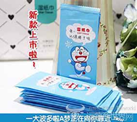 这两款湿纸巾分别是2017年7月17日至2018年6月26日生产的“哆啦A梦专属单片湿巾”和“绿通2单片湿巾”。