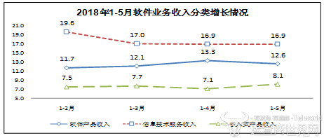 可见,截止今年5月,我国软件服务收入增势突出,软件产品收入稳步增长,嵌入式系统软件收入增长平稳。