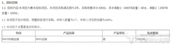 运营商世界网发现,中国移动在2016年度NAS存储设备集中采购需求量为46台;2017至2018年采购需求量是60台;而2018至2020年的需求数量却高达200台,可见中国移动对NAS存储设备的需求量是不断增加的。据了解,NAS存储是磁盘阵列的一种,主要用于存储非结构化数据。