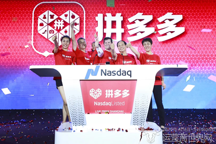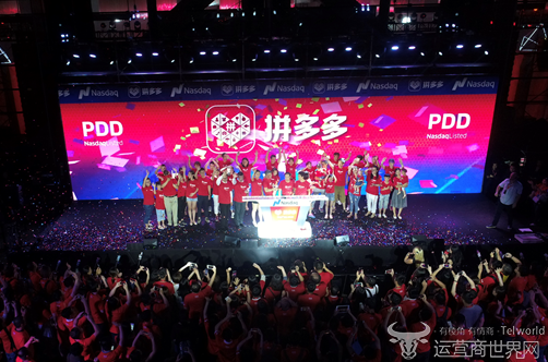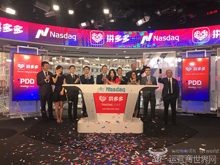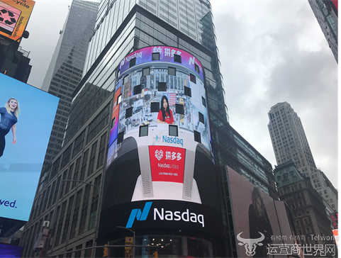 这个瞬间,上海、纽约两地的核心地标,同时滚动起拼多多的标志性Logo,这家新电商的开创企业,正式登陆纳斯达克,股票代码“PDD”。