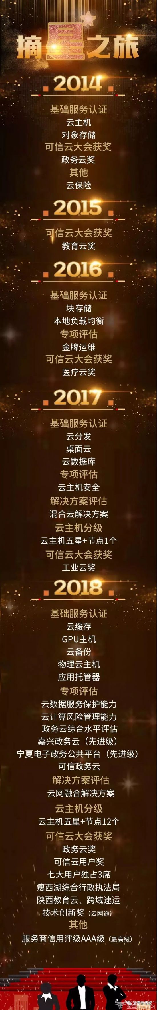 中国电信云公司总经理胡志强:“天翼云自2013年起,积极参与可信云评估、云保险等业务,共同打造可信赖的市场环境,目前我们已经有12项产品及解决方案通过可信云认证,12省的资源池获评五星+最高评级,为业内最多,未来我们将始终跟进可信云步伐,共同推进云计算信任体系建设。” 以可信为本,深耕政务云市场 本届可信云大会上,中国电信天翼云再次获得“可信云政务云服务”大奖,此项殊荣代表了政务云市场对天翼云的认可。天翼云服务过的政府部门客户,遍布20多个省级行政区,涵盖多个行业部门。政务云最看重的安全性,是天翼云始终恪守的承诺,已获得两次政务云奖项、可信云金牌运维专项评估、云主机安全专项评估、云服务数据保护能力评估等,专心提供数据信息安全服务。 在宁夏,天翼云通过建设统一接入云平台,将各职能部门信息集中方便政务处理和信息的共享。统一的云平台更能确保运行的稳定和安全管控,实现上云应用系统互联网备案信息的动态管理。同时,相比传统方式,数据中心的建设和运维大大节约了成本,人员效率也得到了提升。 企业上云,创新和安全同样重要 2018年度可信云的用户奖项,7个奖项天翼云独占三元,引人注目。天翼云根据用户的不同需求,提供个性化的专业服务。三个获奖用户案例中,跨越速运就采用了天翼云的云网融合、安全可信、专享定制化方案。生产时效与数据安全完美实现两手抓,服务时效性的前提下,实现数据与应用的隔离,保障了生产的安全。彻底解决企业的后顾之忧,使跨越速运能把更多的精力放在企业自身的业务发展之上。 天翼云“云网通”让云和网更加密不可分 多年来,天翼云始终在探索更多创新技术。基于电信光网络与天翼云融合应用而推出的新产品——天翼云·云网通获得了2018年“可信云技术创新奖”。通过创新内网应用上云方式和系统完善网络支持等,可为广大行业客户提供安全、高速、可靠、经济的云网融合解决方案,帮助客户快速、安全、平滑的将自身原有的本地IT模式转化为云IT模式,进行高效统一的使用和管理,真正实现在云上使用局域网服务的诉求,助力客户降低IT成本、提高IT敏捷性。 安全,是一种责任和使命 始终结合业务需求,不断进行探索,越来越多的业务获得了可信云大会的“云产品认证”,累计以往的7项,今年再大幅增加5项包括云缓存、GPU云主机、云备份、物理云主机和应用托管容器基础服务认证,实力体现了天翼云各类产品的综合能力。 云网融合解决方案评估的通过,象征着未来天翼云能够为各类客户提供云网融合、专享定制、安全可信的云服务。服务商信用评级AAA级,是大会给予中国电信天翼云的权威背书,更是天翼云身上更重的责任。当前国内互联网高速发展,云平台市场也大幅崛起,这是机会也是挑战,数据安全成为了首要议题。中国电信作为三大运营商之一,兼顾产品研发的同时,更看重安全性,致力于为社会提供更安全、更好用的云产品和云服务。