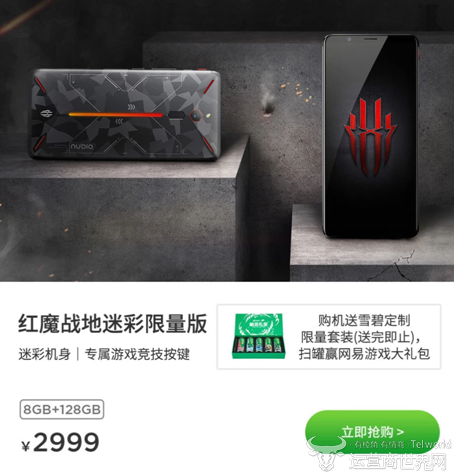 努比亚红魔电竞游戏手机拥有6+64GB版本与8+128GB版本,售价分别为2499元与2999元。在刚刚结束的ChinaJoy旗舰,努比亚还推出了红魔战地迷彩限量版,8+128GB的存储空间售价同样为2999元。红魔战地迷彩限量版采用了"LC激光冷雕"+"AF隐形涂装技术",让机身图案持久弥新。