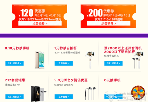 在8月14日-8月18日努比亚V18、努比亚Z17miniS、努比亚Z17mini这三款机型可领取120元的优惠券,而努比亚Z17 6+128GB版则可领取200元的优惠券。同样性价比十足。